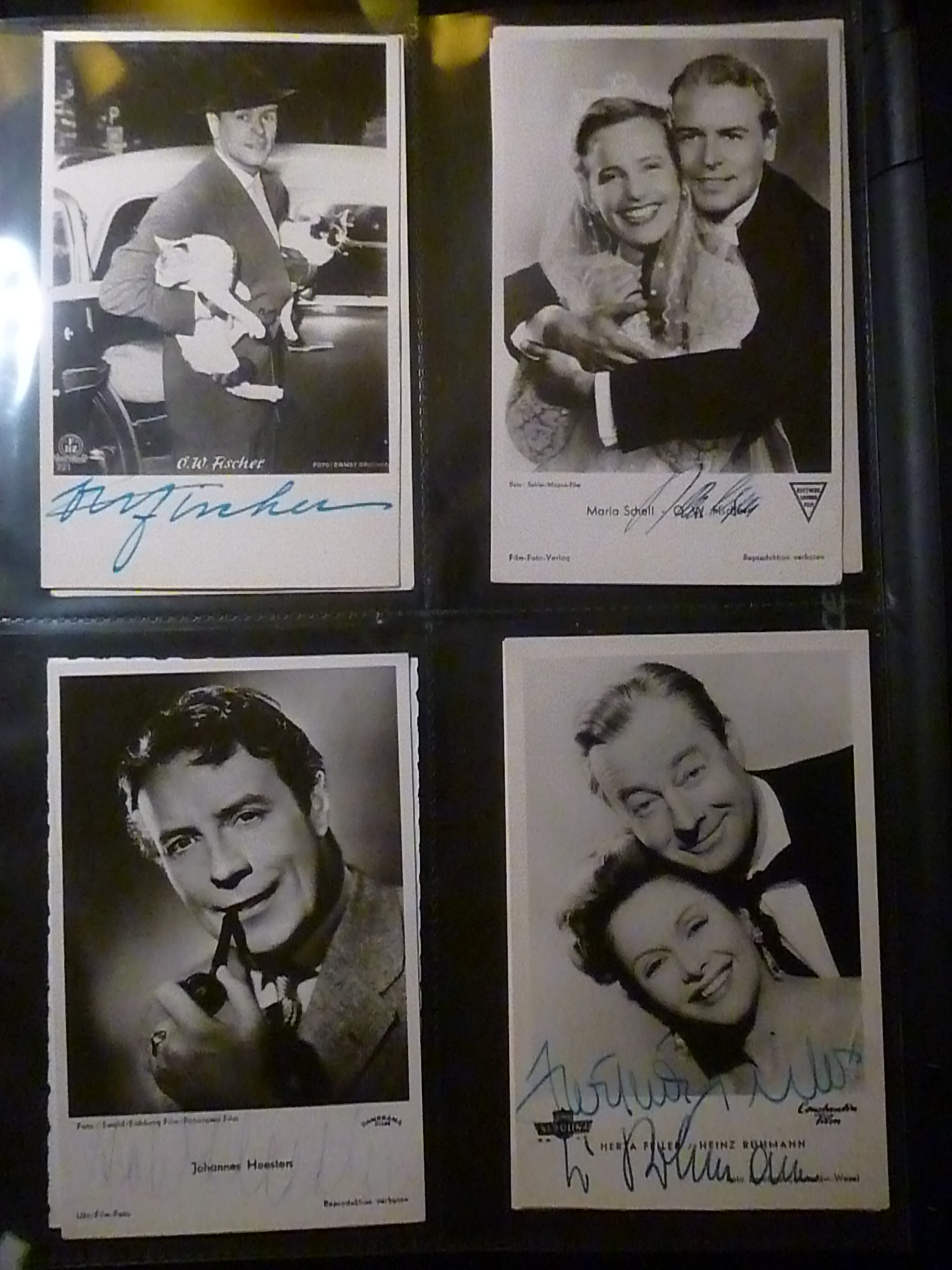 Ich habe meine Kindheit und Großteil der Jugend in der DDR verbracht. Dort konnte man ab und zu westliche und internationale Filme sehen, was ich mit Begeisterung tat. Zu jedem Film gab es ein Programmheft , wo auch die Adressen der Hauptdarsteller gezeigt wurden. Ich kannte bald alle westlichen Filmstars, verehrte sie unendlich, war ein schwärmerischer Backfisch von 15/16 Jahren und begann, Briefe an sie zu schreiben mit dem Wunsch, mir ein Autogramm zu schicken.   Es klappte tatsächlich und ich bekam über 50 Schwarzweiss-Postkarten mit Original-Autogrammen und Widmungen (ein paar Beispiele anbei). Es war sehr spannend und immer, wenn ich aus der Schule kam, war meine erste Frage: „Mutti, ist Post für mich da?“