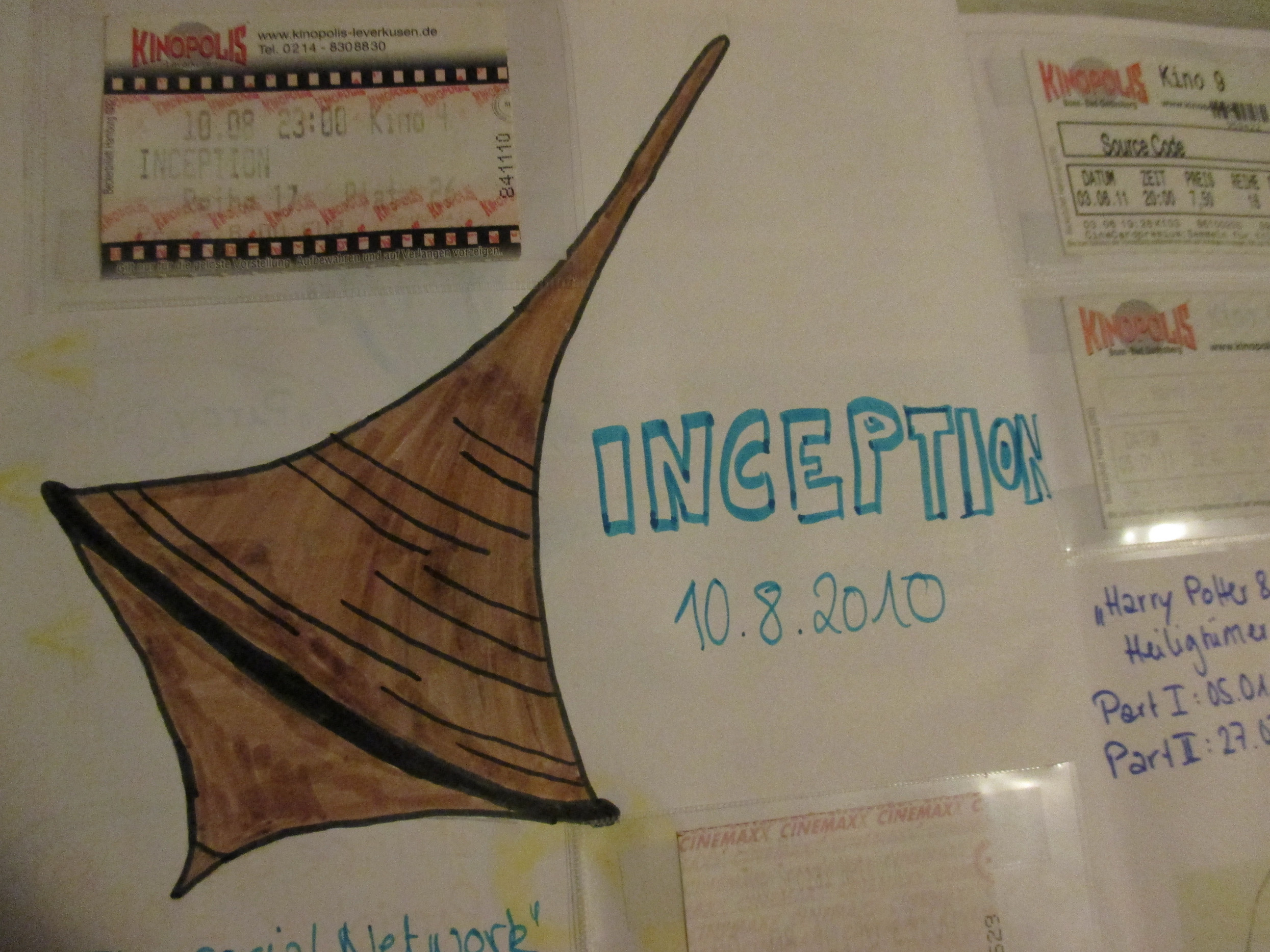 Ich liebe es ins Kino zu gehen und Filme zu schauen und habe vor einiger Zeit angefangen, meine ganzen Kinokarten, die ich bisher gesammelt habe (leider sind nicht alle Karten aus meinem Leben erhalten geblieben), in einem gebundenen Buch zu verewigen. Ich stecke sie in kleine Klarsicht“hüllchen“, die ich dann ins Buch klebe.