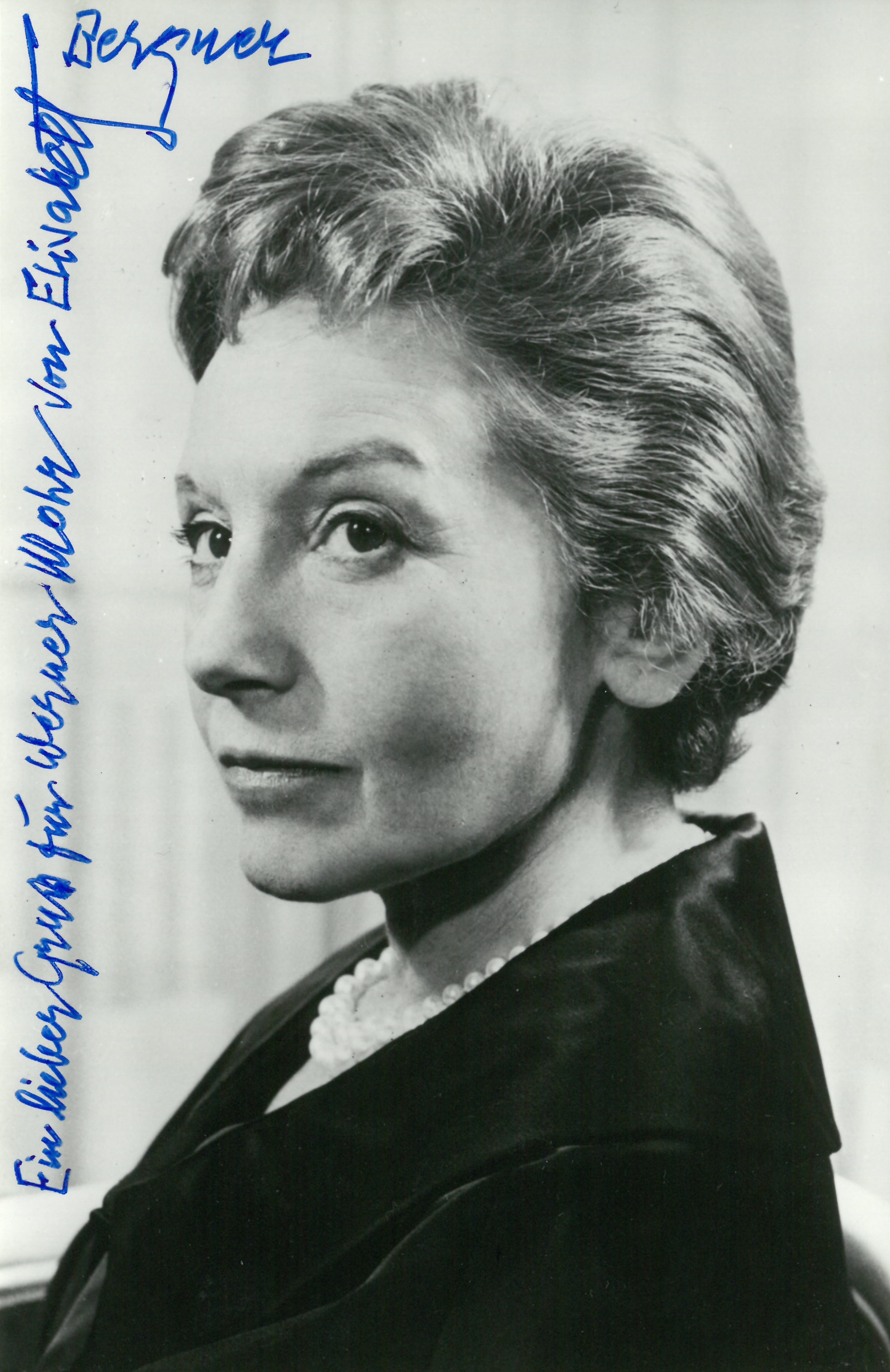 Anlässlich der Premiere von DIE GLÜCKLICHEN JAHRE DER THORWALDS (R: John Olden, Wolfgang Staudte) am 16. November 1962 im Gloria-Palast in Berlin, in Anwesenheit der Darsteller, nahm ich eine Postkarte von Elisabeth Bergner mit und hoffte auf eine Unterschrift. An diesem Abend war sie den Autogrammjägern wohlgesonnen, und nach Schluss der Vorstellung nahm ich glücklich die mit „sehr gerührt“ unterschriebene Karte in Empfang.