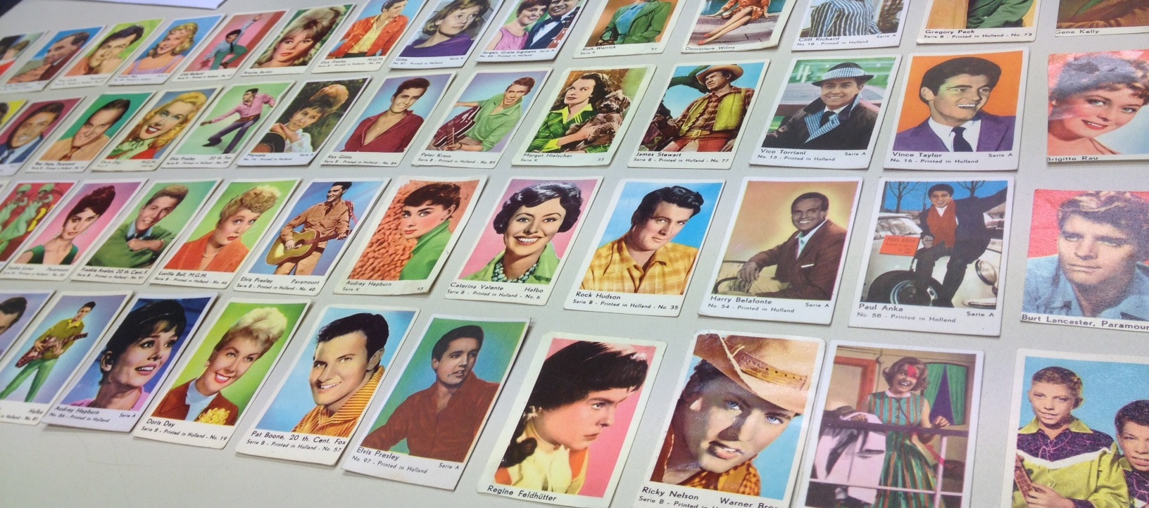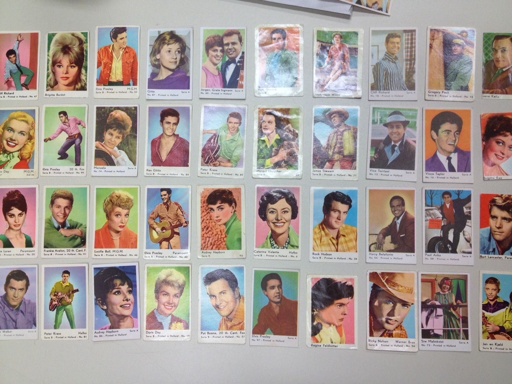 Der Kaugummi hat nicht besonders geschmeckt, aber die Bildchen waren dabei. Das ist der Rest meiner Sammlung, vieles ist schon verschütt‘ gegangen. Wir haben als Jugendliche in den 1960er Jahren die Bilder unserer Idole gesammelt und auch einige Bilder aus dem Bekanntenkreis dazu geschenkt bekommen. Teilweise kannten wir die Schauspieler aber gar nicht. Die Welt des Kinos und der Geschichten hat uns Mädchen jedoch immer interessiert. Ich wohnte nach dem Umzug von Frankfurt schon in Erzhausen und hier gab es nur ein bescheidenes „Stuhlkino“ im Saal der „Linde“. Der Eintritt war eine Mark am Sonntagnachmittag. Die „Linde“ (einheimisch: „Haase Peter“) mit dem Saal gibt es heute noch, das Kino schon lange nicht mehr. Filme und Schauspieler sind aber heute noch mein Hobby.
