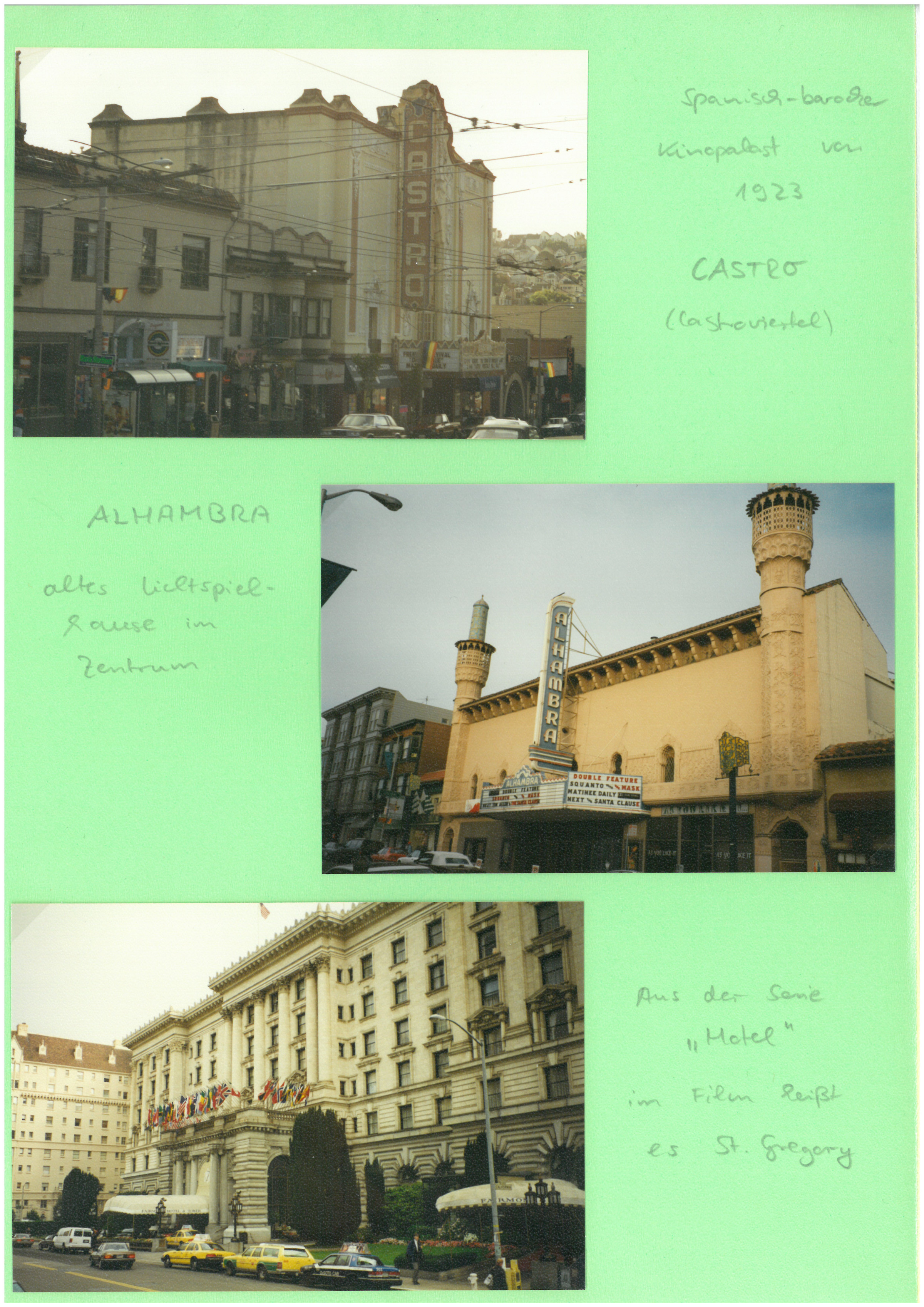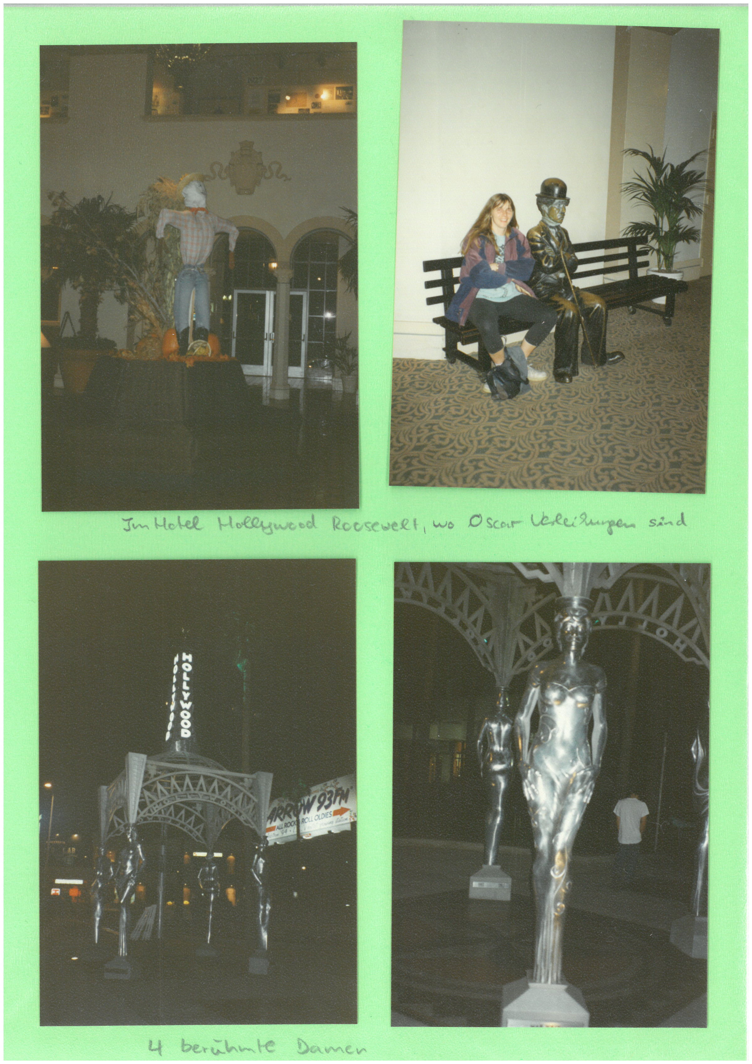 Im Jahr 1994 trat ich eine Filmreise in die USA an, auf die ich durch Werbung in der Zeitschrift Cinema aufmerksam wurde. Die Reise im Okt/Nov 1994 war gesponsert von Coca Cola und der Ufa. Die bunt gewürfelte Reisegruppe in der Größe einer Schulklasse, die aus ganz Deutschland zusammenkam und meist aus Einzelreisenden bestand, kam schnell in Kontakt miteinander, da viele ein halbes Doppelzimmer gebucht hatten und dementsprechend verteilt wurden.
